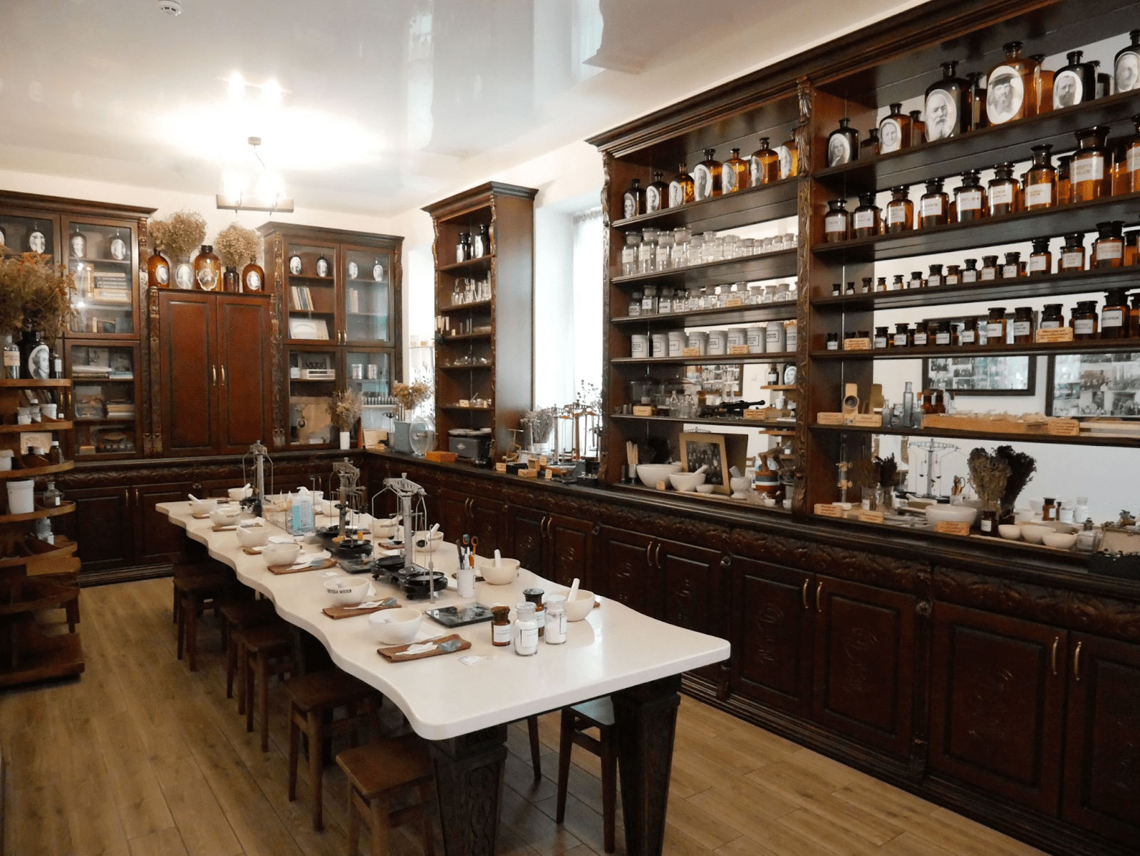 В закладі залишились меблі з 1903 року. Їх реставрували та доповнили експонатами з усієї країни. В аптеці-музеї відвідувачі можуть побачити: